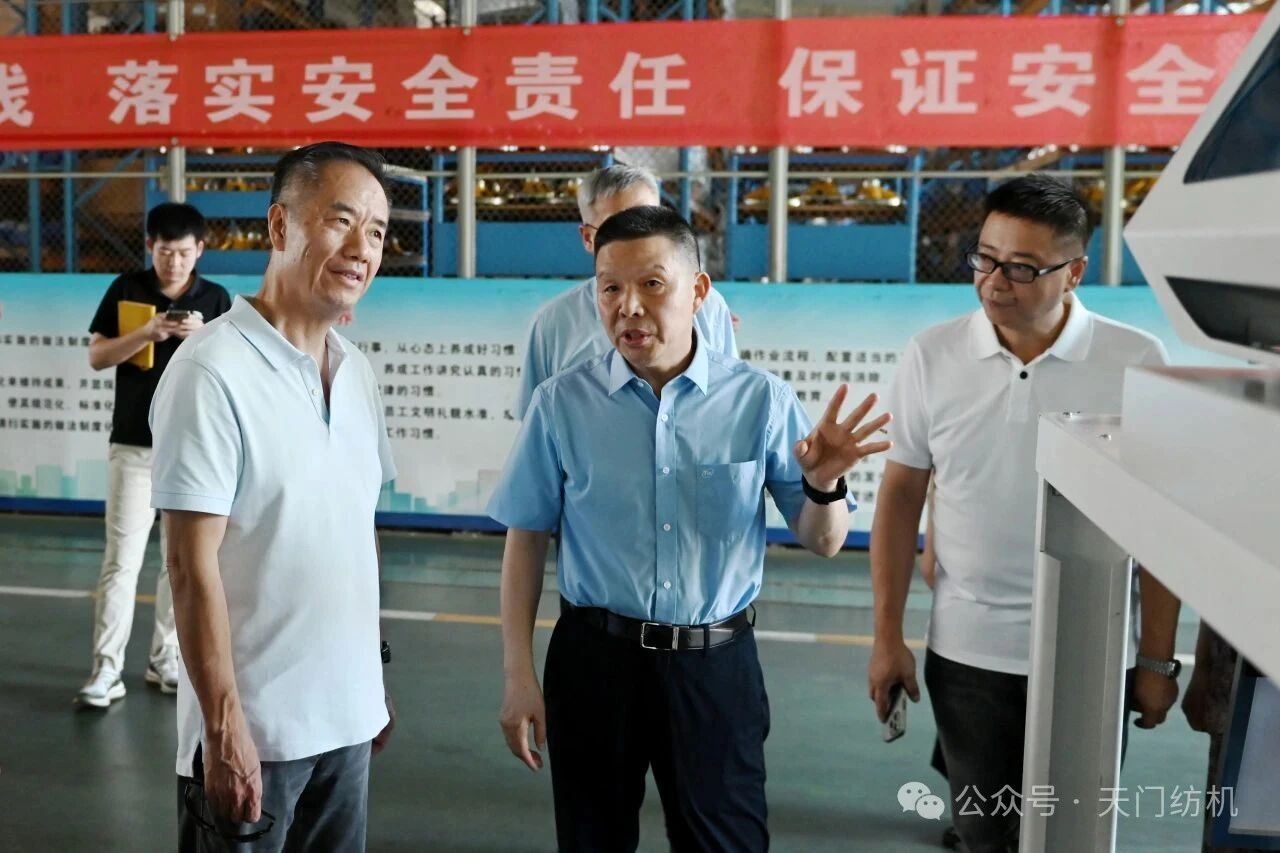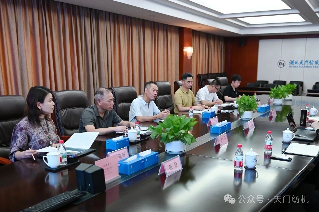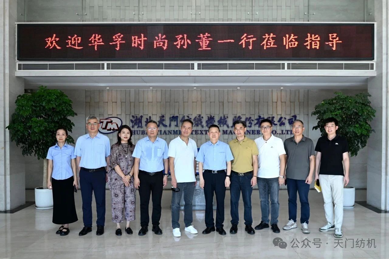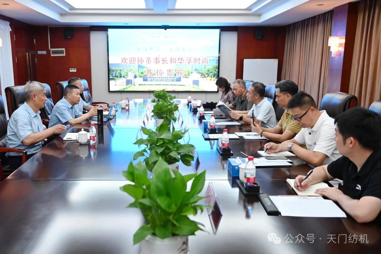 2025年8月26日,華孚時尚股份有限公司董事長孫偉挺一行6人專程到訪天門紡機進行考察交流。公司董事長沈方勇等領(lǐng)導(dǎo)熱情接待到訪客人,雙方圍繞行業(yè)形勢及協(xié)同發(fā)展等議題進行了深入交流,并就淮北及越南等新建項目的再次合作達成意向。